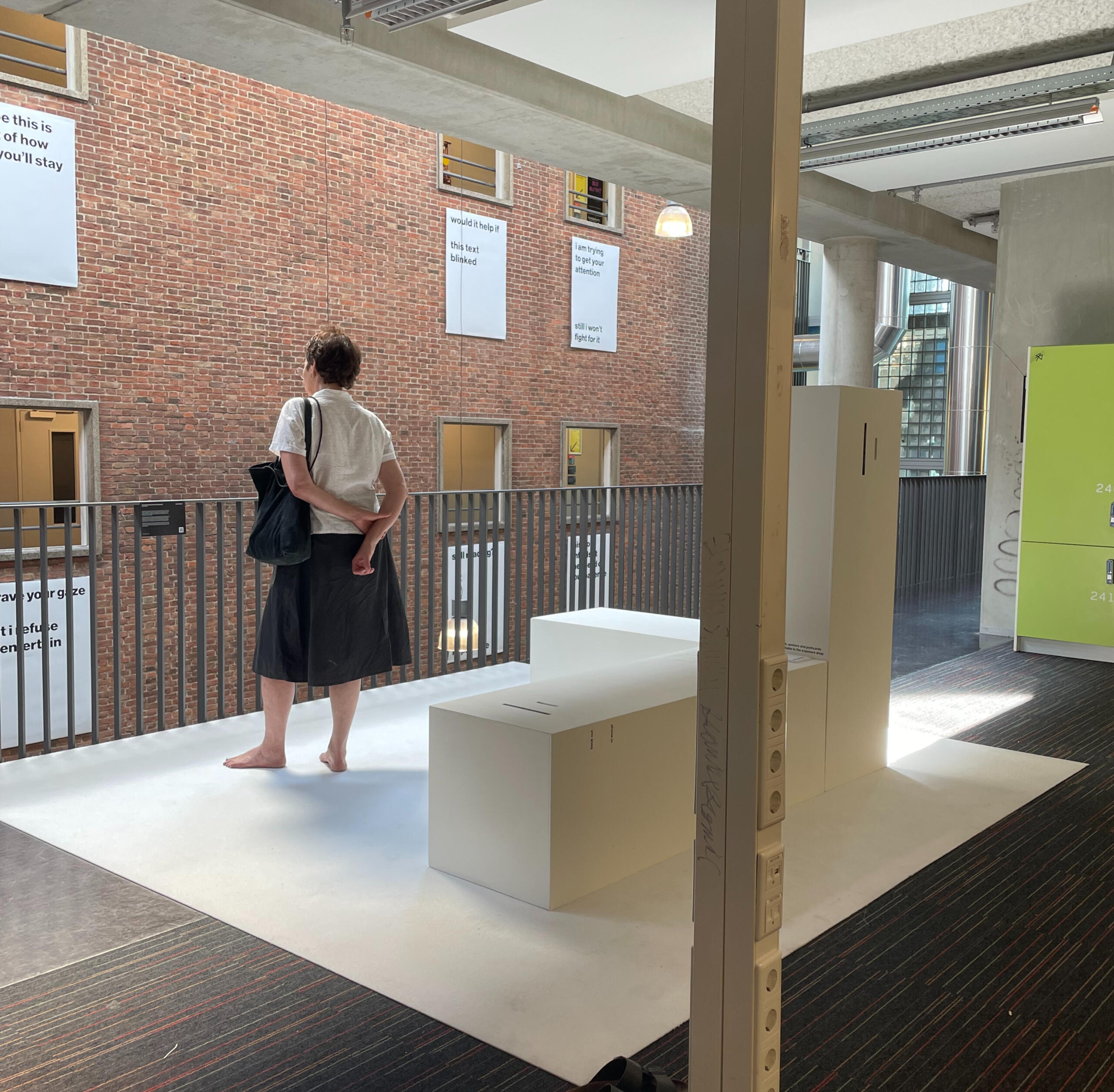 I’m a designer fueled by curiosity who creates to explore what intrigues me. As a self-proclaimed visual thinker and verbal processor, I transform research spirals into conceptual works—text, photography, video, installations and beyond—balancing content and design. I create from within the space between words and visuals, posing open-ended questions rather than answers, inviting reflection and shared curiosity. If it lingers, good. If not, fine. My work exists to start a conversation, not finish it.